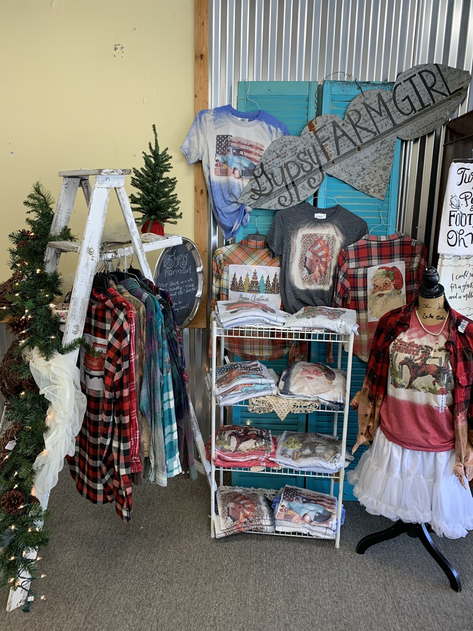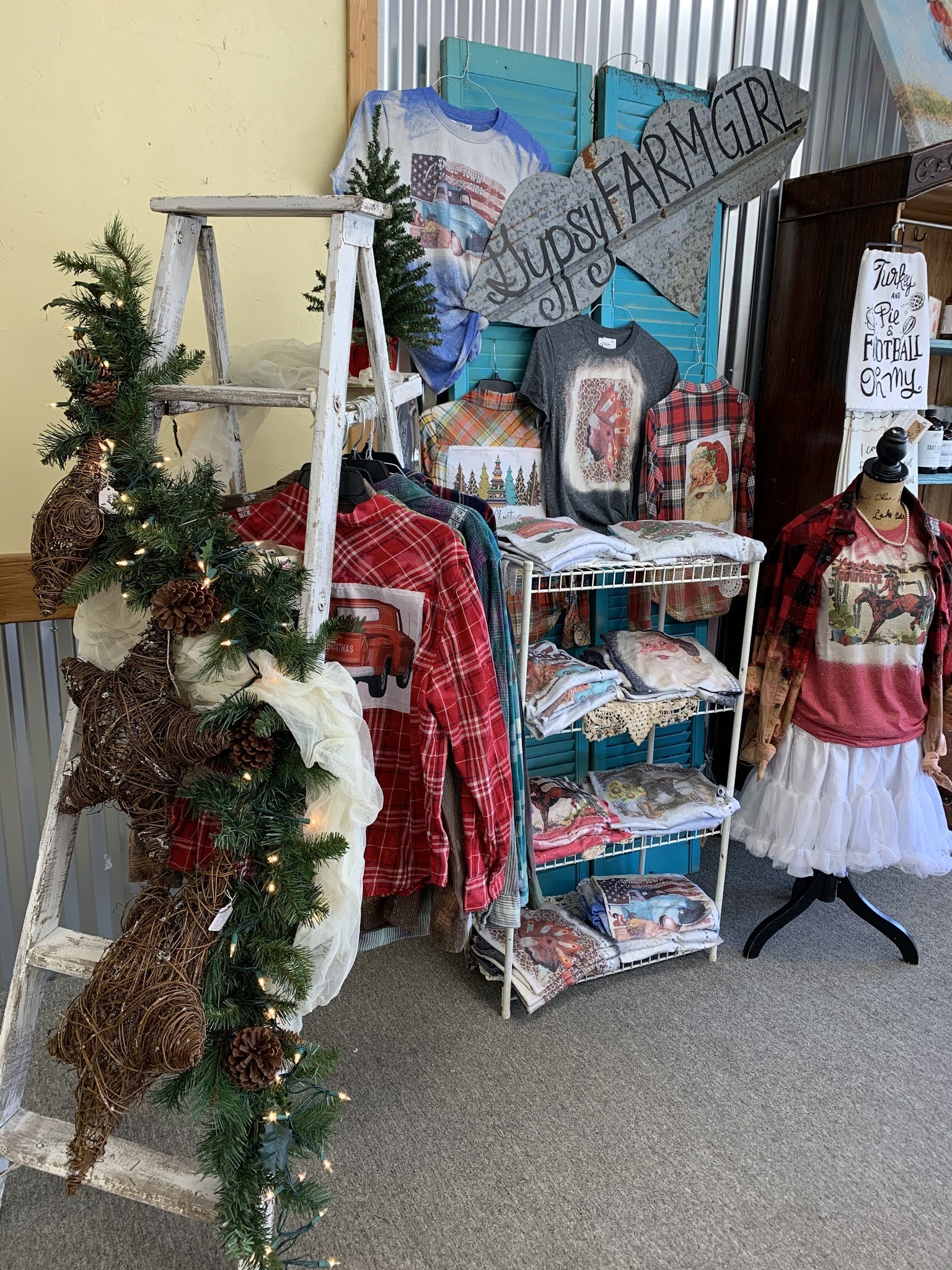 Now, to settle the rumors that were flying right after I made the announcement about P20 - we still have our space at Kickin' K Cattle Co in Quitman, Texas, with no plans to leave there (I actually have a contract there.) This was an opportunity that was presented to us this week, and 2020 being what it is, well I decided to embrace the opportunity that was extended to me. P20 is in our hometown and I pass through Gilmer almost every day, so stocking it will be convenient and our Gilmer friends and family have been so good to us showing up at all our events over the past few years. We only have one event left on the calendar - the Gilmer Yulefest on December 5th (I'll have my camper on the square that day!) With no other pop up events or shows on the radar for foreseeable future, we felt this was a good move to have some things available for you to conveniently shop downtown. Gilmer and Quitman are about 40 minutes apart and I live between the two towns, but they both attract different clientele. With two spaces, this gives our friends more convenient options to shop locally. If you are not local or prefer to stay home and shop online - that will always remain an option as well. You can shop our website at www.gypsyfarmgirl.shop (newest tees are always available here before etsy) or our etsy shop gypsyfarmgirl.etsy.com. You can also "tap to shop" some of our items in our Facebook and Instagram pictures, if you see the little shopping bag icon in the bottom of the picture. Don't forget the Tee of the Week deal is back on our website or if we have the shirt in either boutique space, you can show them the image from our social media with the current special and they will honor it.
