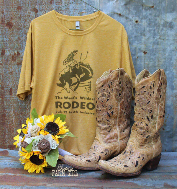 These colors! The antique gold rodeo tee and sunflower bridal bouquet make me ready for summer time!