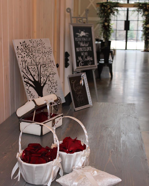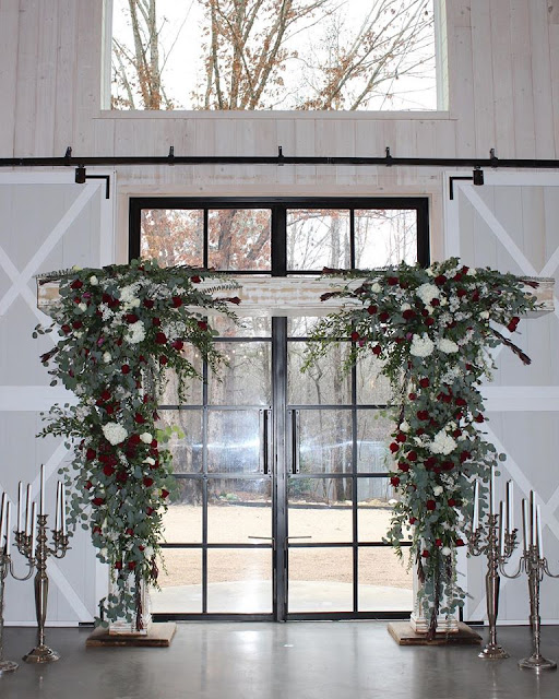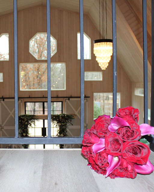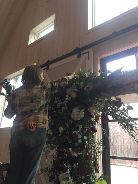 We finshed setting up Thursday, then I picked up all the flowers and started the prep work for Friday and Saturdays arrangements. I opened Friday and closed on Saturday in Mineola, and in between made lots of pretty floral bouquets. This large arch was one of our favorite things to make. The Spencer Wedding was held at Dove Hollow Estates in White Oak. Madison's colors were white, black, silver, and burgundy.